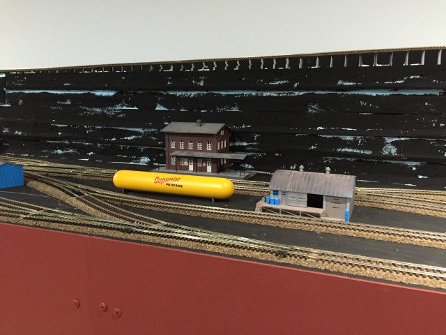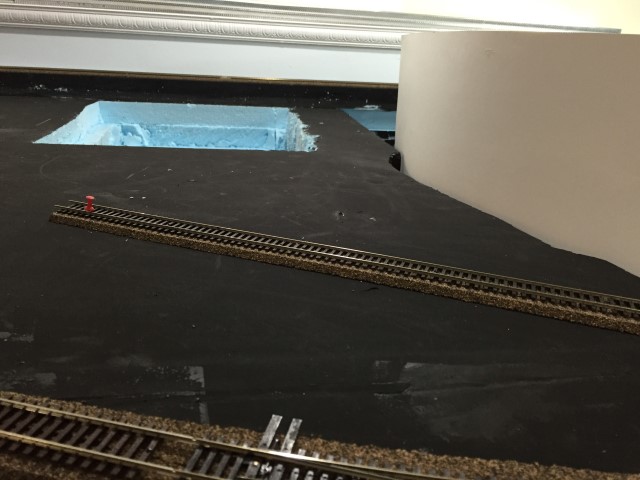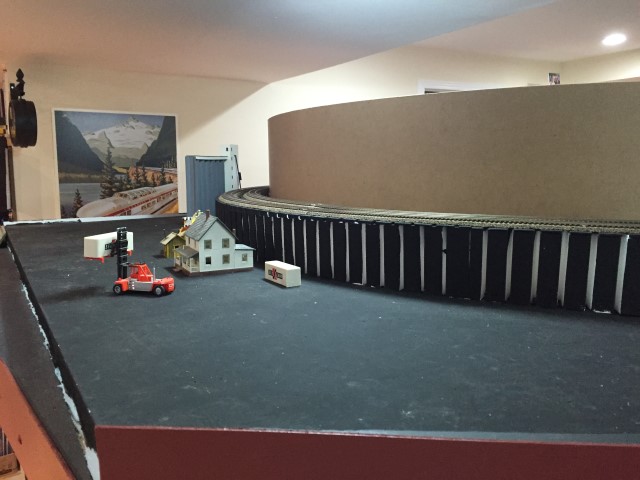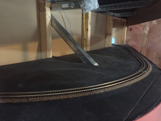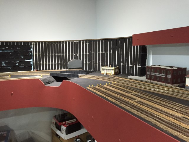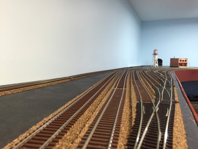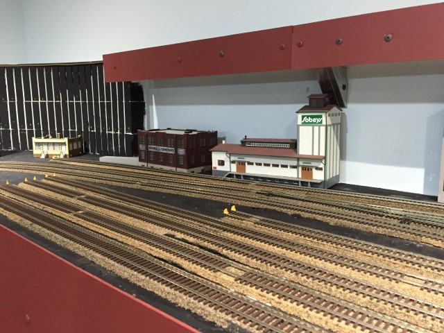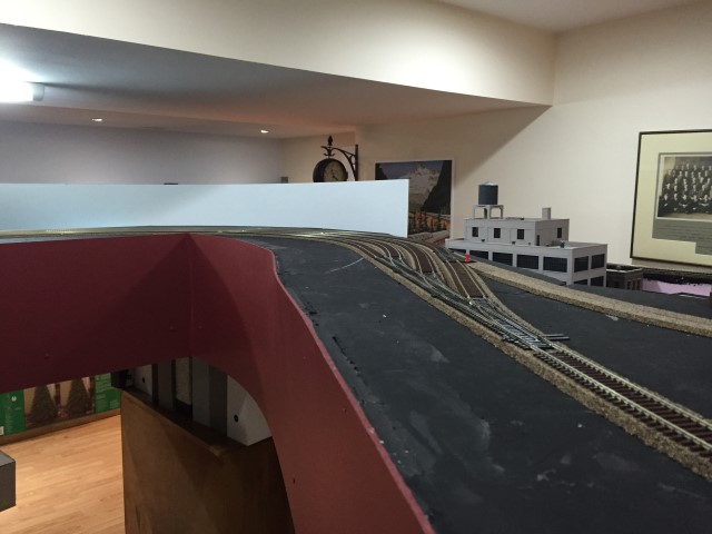 Yard storage tracks and the loop track going through the wall