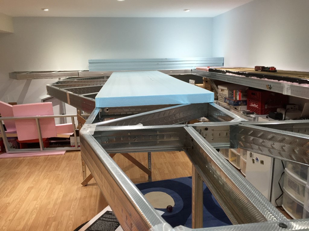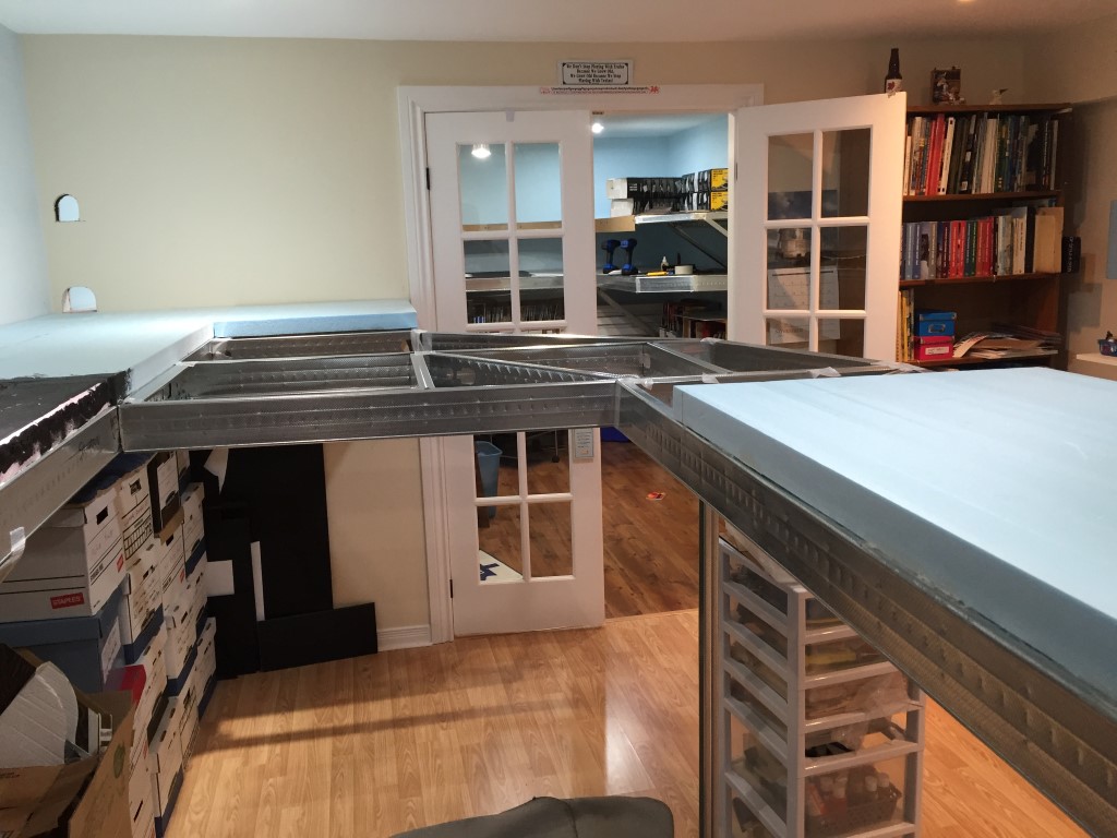 It's been a busy fall so this is the first chance to get back at the railroad for our fourth work bee on the benchwork. Robert Peck and Kevin Lougheed were joined by Grant Ledrew as we got all the portals cut into the walls and built the first peninsula for the Abercrombie Spur.